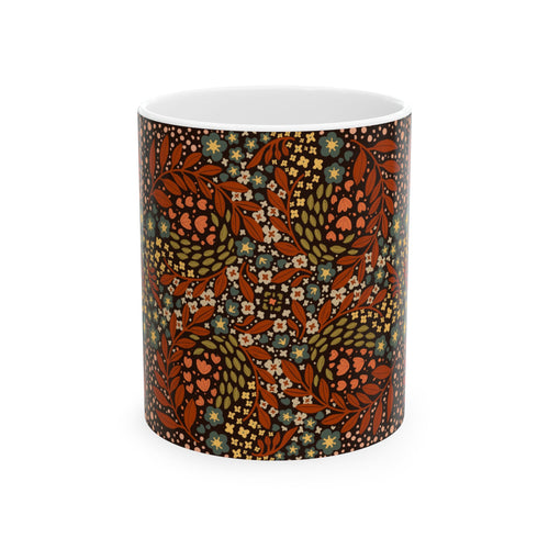 Autumn Floral Pattern Mug | Rust Orange Vintage Flower Design
